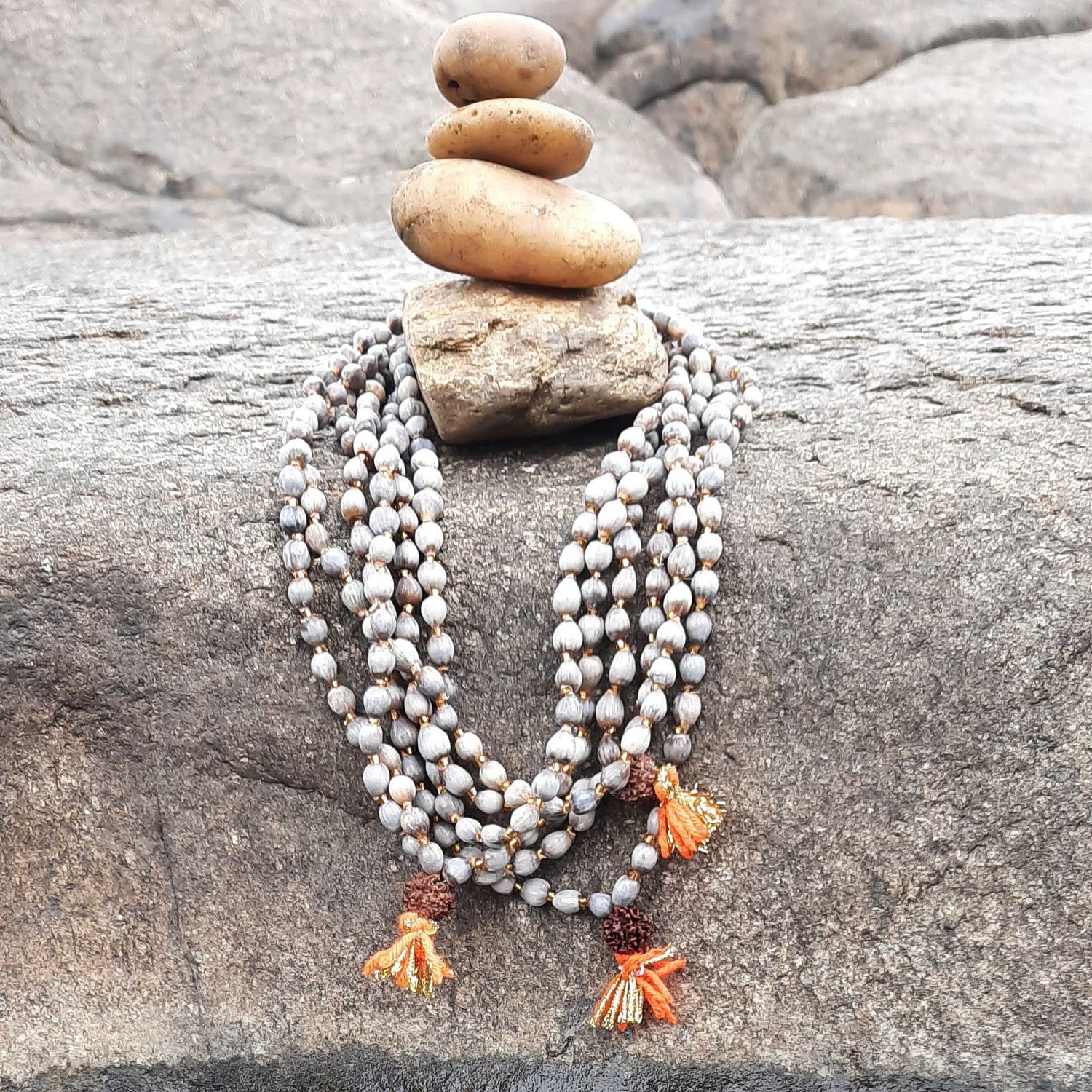 Collected from river grasses that grow along the river Thungabhadra, Vaijanti seeds are often used for worship but we love to add them to our products. Wear them strung around your neck or carry one of our accessories embellished with this gift from nature.